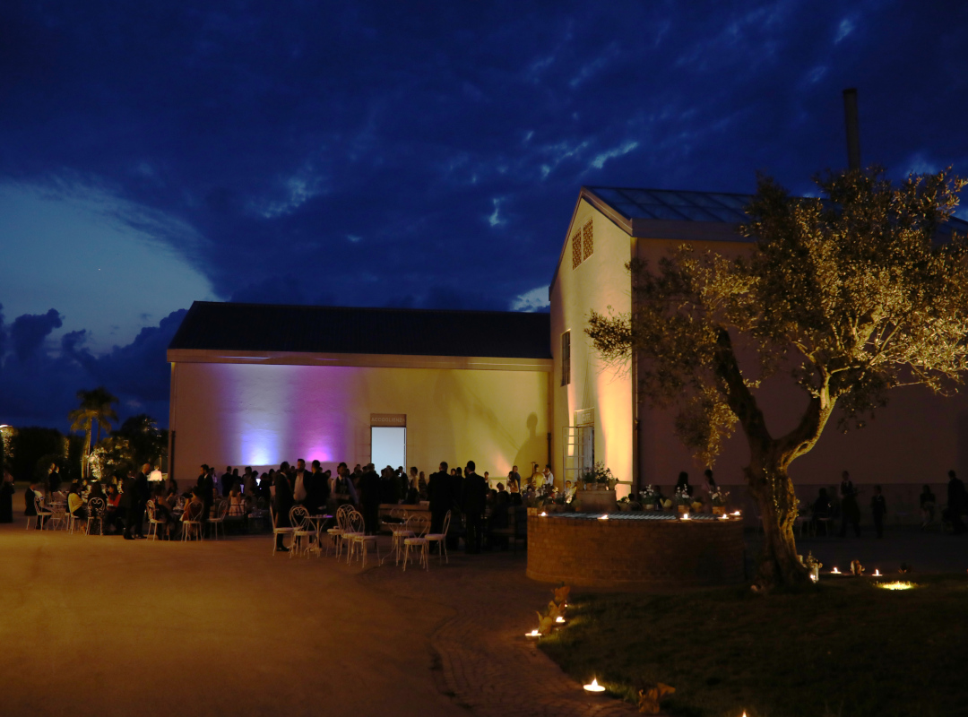 La Tenuta, costruita agli inizi dell’800, si estende su una superficie di oltre 4 ettari e comprende l’antico casale padronale e l’azienda agricola volta alla produzione di ortaggi a campo aperto e di agrumi. Gli ampi spazi all’aperto consentono l’allestimento di tende, tensostrutture o gazebi direttamente sul prato o nell’ampia corte interna. Qui è possibile celebrare il rito civile.