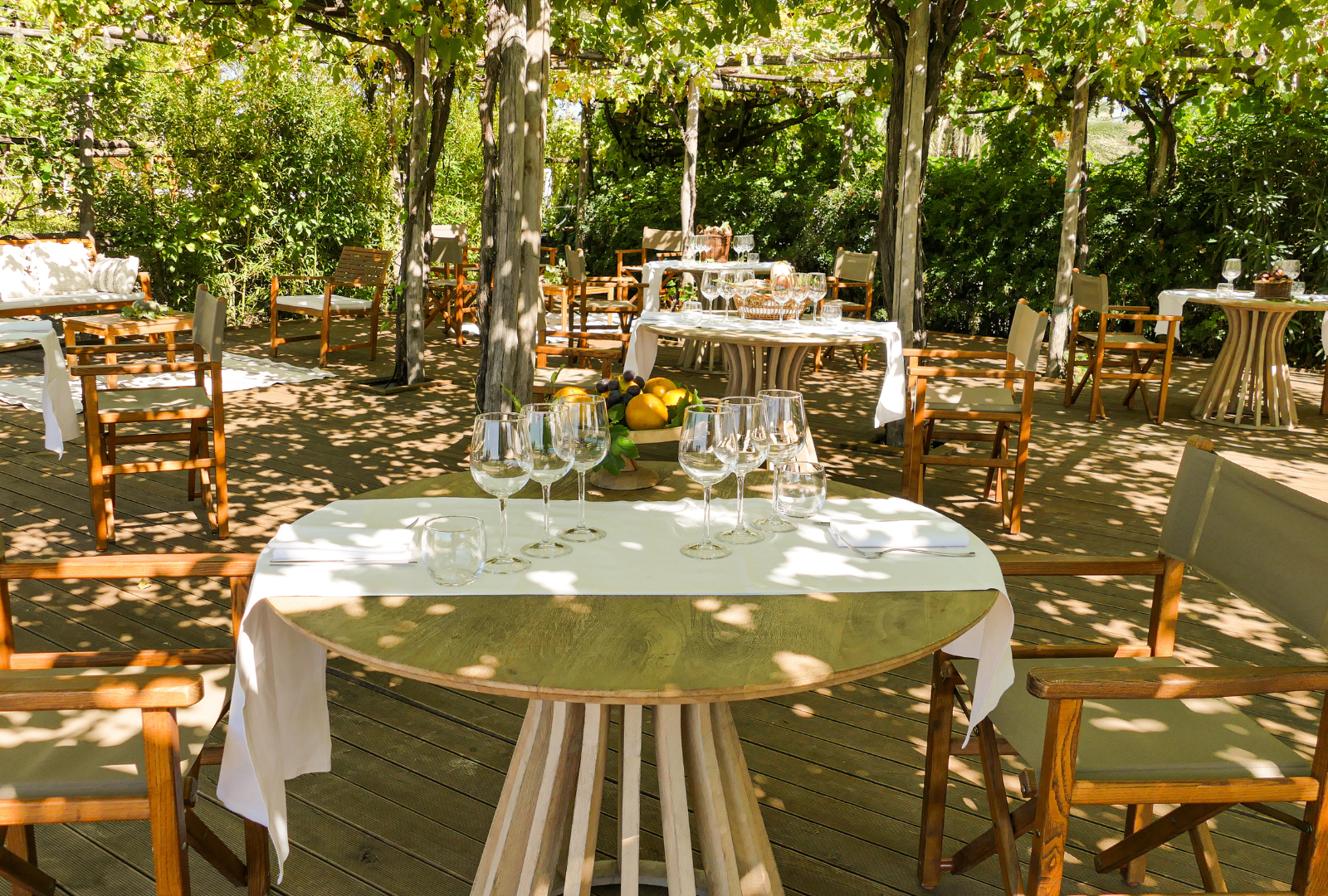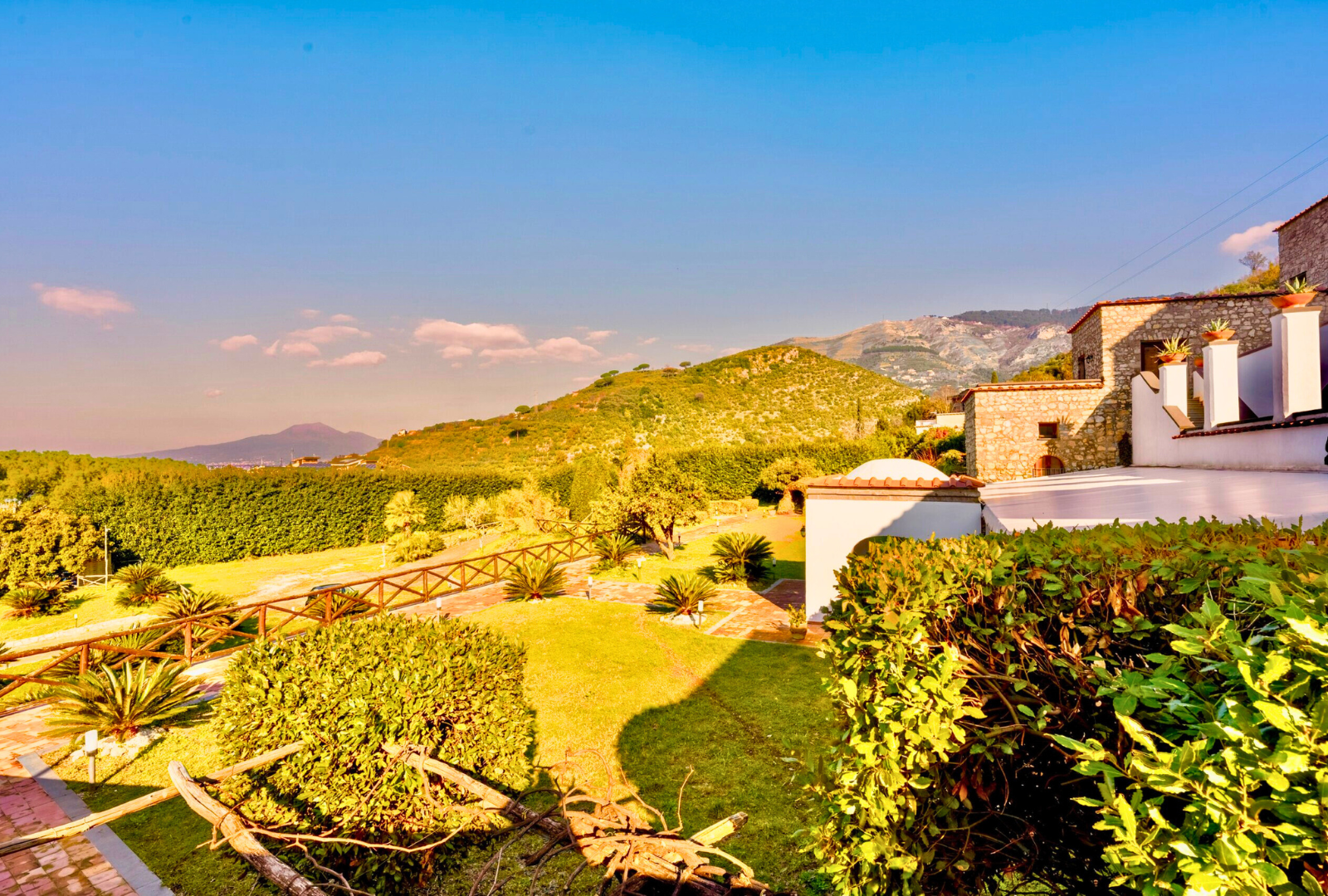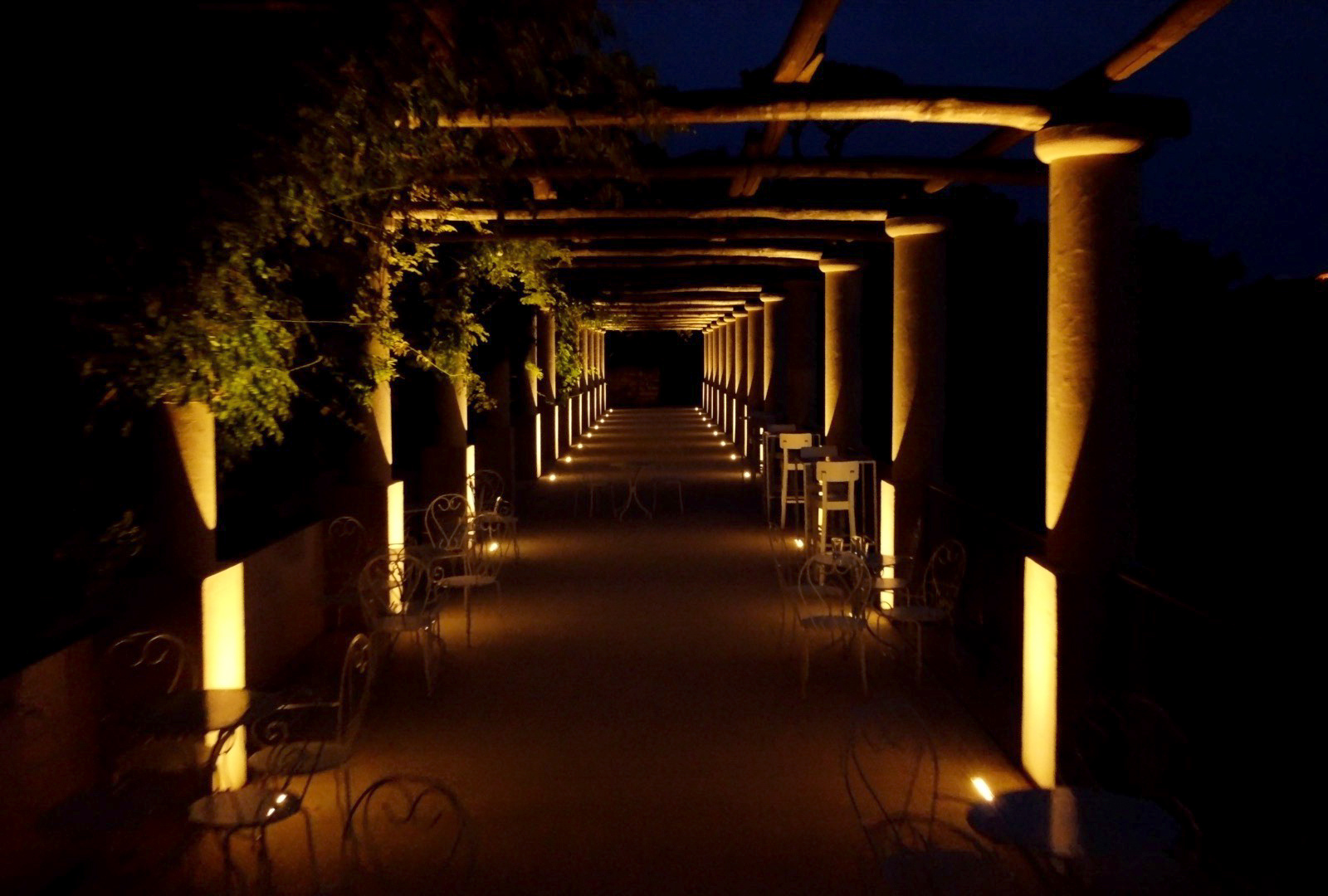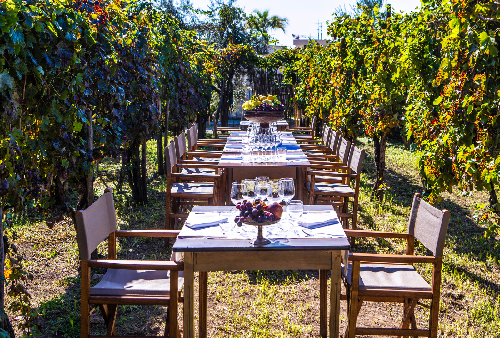 Il Giardino dei Sensi è uno spazio all'aperto composto da pergolato, prato e vigneto. Si sviluppa lungo il viale del parco archeologico di Pompei, prospiciente all‘antica dimora Villa di Diomede e con incantevole affaccio su essa. A soli 3 minuti a piedi dall'uscita di Villa dei Misteri.